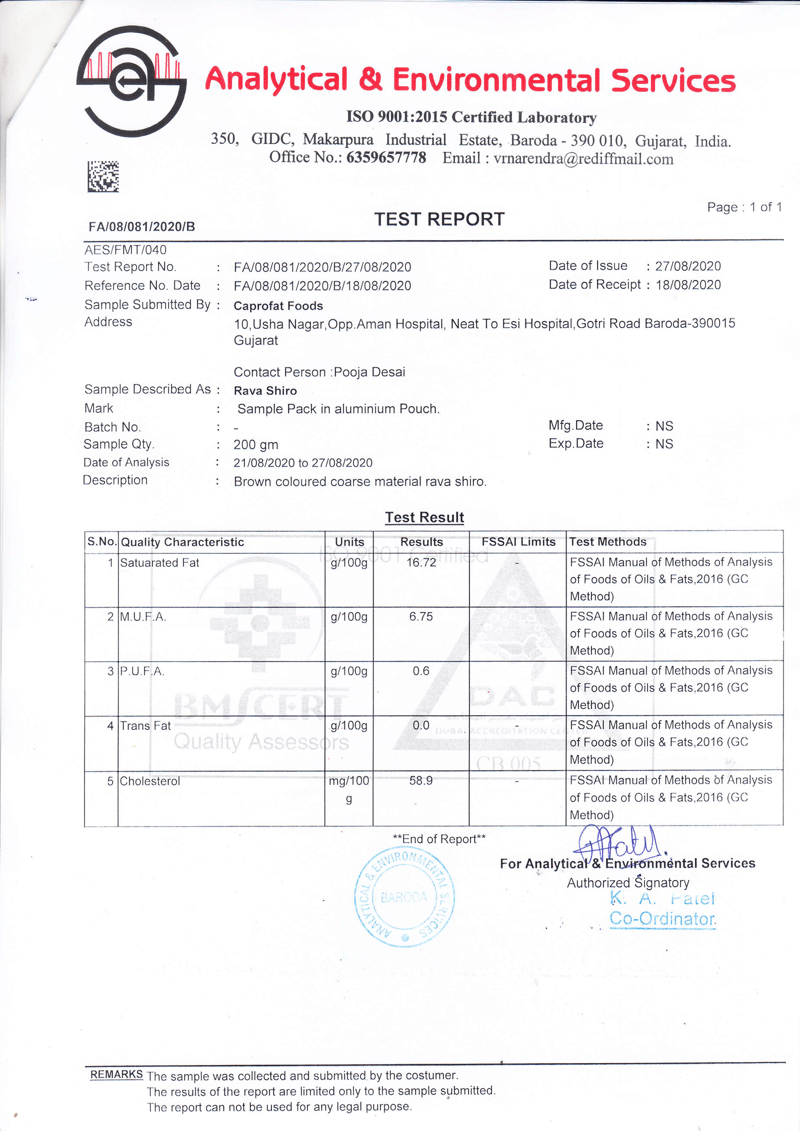 have done lab taste and the reports are attached here.In our quest for continuous improvement, we attach